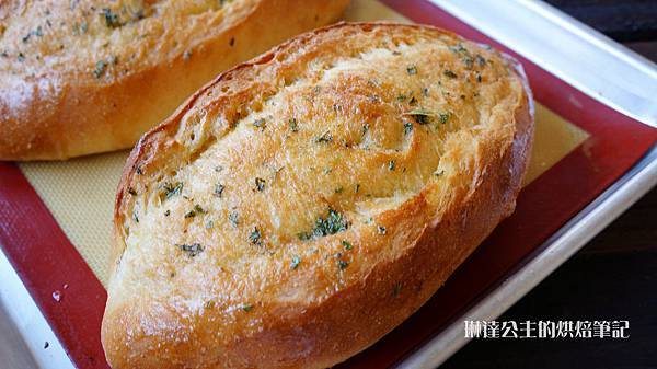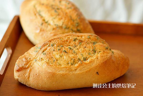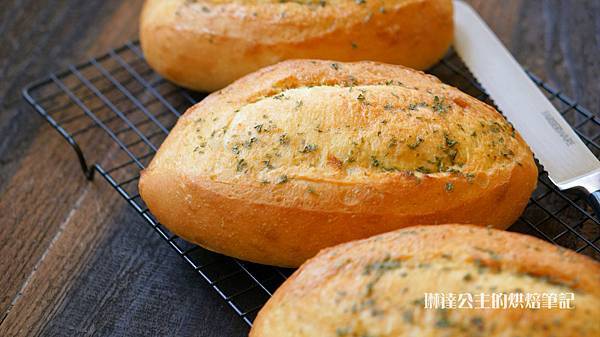 10. 出爐後趁熱再塗抹上大蒜奶油。